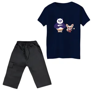 ست تیشرت و شلوارک پسرانه مدل پاندا کنگفوکار کد 3 رنگ نارنجی