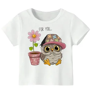تی شرت آستین کوتاه دخترانه مدل دو جغد WS02