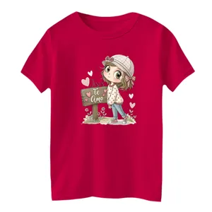 تی شرت آستین کوتاه بچگانه مدل دخترک و گل کد 2 رنگ سرخابی