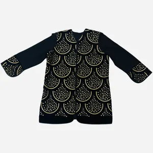 این مانتوی مشکی خاص، با طراحی جلو باز و سبک، انتخابی بینظیر برای خانمهاییست که در عین سادگی، به دنبال درخشیدن در جمع هستند. دوخت این کار با دقت بالا انجام شده و تکه دوزی الهامگرفته از طرح برگهای هنری، جلوهای لوکس و متفاوت به آن بخشیده است.