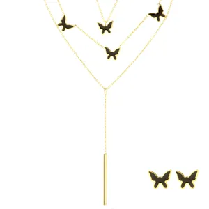 نیم ست زنانه مدل پروانه جنس استیل وارداتی شامل ۳ گردنبند و یک جفت گوشواره رنگ طلایی است که بسیار مناسب هدیه دادن و استفاده در مجالس و میهمانی هاست.قابل ذکر است که این نیم ست زیبا اصلا زرد نیست و نگین های سبز رنگ کار شده در آن زیبایی آن را دو چندان کرده است.