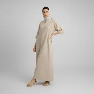 مانتو عبایی کرم رنگ کاملا سبک و خنک مناسب فصل گرم می باشد.