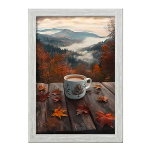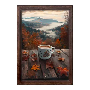 تابلو خندالو طرح فنجان قهوه و جنگل کد F7366