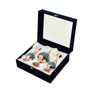 این ست شامل یک جفت گلدان مس و خاتم با ارتفاع ۳۰ سانتیمتر و یک قندان سفینهای شکل مس و خاتم در سایز ۳ است که با دقت و ظرافت در یک جعبه مخملی با ابعاد ۵۰×۴۰×۲۵ سانتیمتر قرار گرفتهاند.