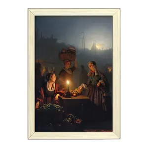 تابلو خندالو طرح نقاشی بازار با نور شمع اثر پتروس ون شندل کد F12261