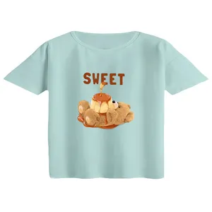کراپ تیشرت آستین کوتاه زنانه مدل خرس کاراملی