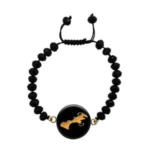 دستبند فری سایز بوده و از طریق کش پشت آن، سایز تنظیم میشود. جنس پلاک دستبند استیل رنگ ثابت و بند آن، نخی است.