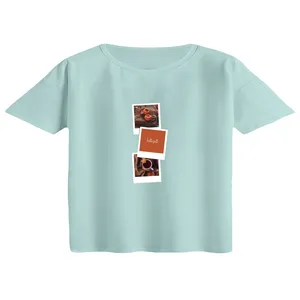 کراپ تیشرت آستین کوتاه زنانه مدل گل قهوه ای