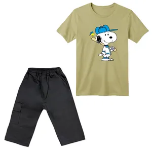 ست تیشرت آستین کوتاه و شلوارک پسرانه مدل اسنوپی رنگ کرم