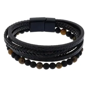 این دستبند از سنگهای طبیعی تورمالین سیاه و سنگ طبیعی چشم ببر تشکیل شده است. چرم دستبند مصنوعی و از نوع مرغوب میباشد. قل دستبند از نوع کلیپسی گاز گیر است.