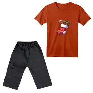 ست تیشرت آستین کوتاه و شلوارک پسرانه مدل کریسمسی کد 015
