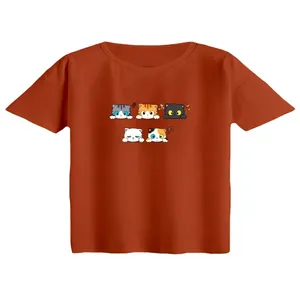 کراپ تیشرت آستین کوتاه زنانه مدل سه گربه