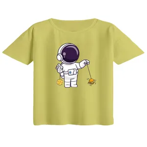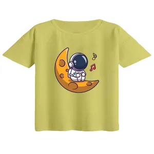 کراپ تیشرت آستین کوتاه زنانه مدل فضانورد و ماه