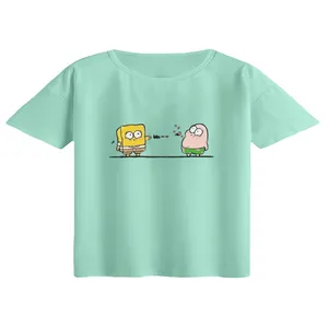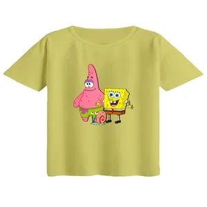 کراپ تیشرت آستین کوتاه زنانه مدل باب اسفنجی