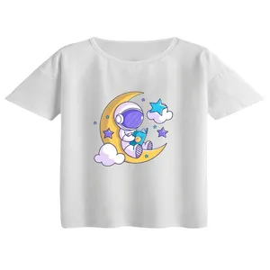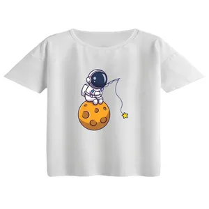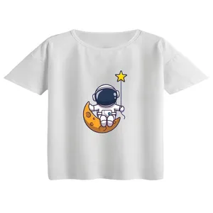 کراپ تیشرت آستین کوتاه زنانه مدل فضانورد و موشک کاغذی