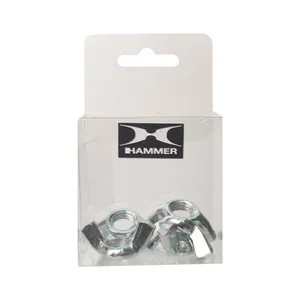 مهره خروسکی هامر به صورت رزوه استاندارد و ماشینی و سخت کاری شده می باشد. این مهره خروسکی دارای دو زائده به شکل بال برای مهار مهره ( باز و بست ) میباشد و به راحتی با دست و بدون ابزار باز و بست می شود. این مجموعه مهره خروسکی هامر دارای 15 عدد مهره خروسکی در سایز M8 است.