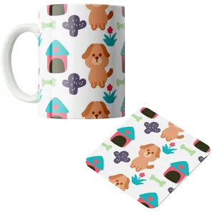 ماگ پاد آفرین مدل سگ کد DKC377 به همراه زیر لیوانی