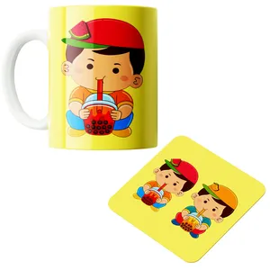 ماگ پاد آفرین مدل پسر بچه مداد به دست کد DKC386 به همراه زیر لیوانی