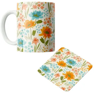 ماگ پاد آفرین مدل گل و گلدان کد DKC395 به همراه زیر لیوانی