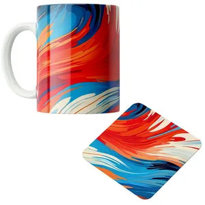 ماگ پاد آفرین مدل خطوط روان رنگارنگ کد DKC613 به همراه زیر لیوانی