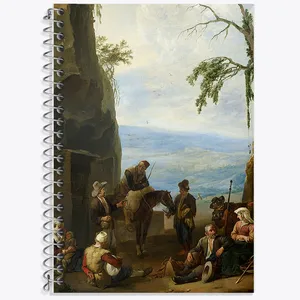 دفتر شطرنجی 50 برگ خندالو طرح نقاشی دهقانان در حال استراحت اثر یوهانس لینگلباخ کد F12402