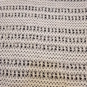 پارچه لباس عرض 1.5 متر مدل قلاب بافی راه راه رنگ کرم