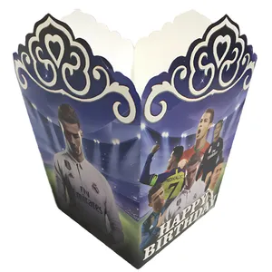 این محصول شامل 10 عدد ظرف پاپ کورن تک نفره میباشد که روی آنها طرح توپ فوتبال می باشد .