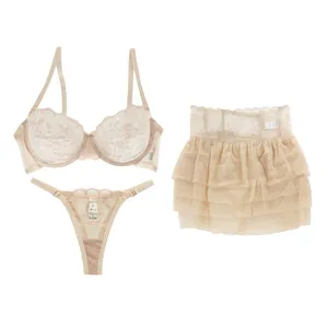 ست شورت و سوتین زنانه برتا مدل توری کد 2400UY به همراه دامن