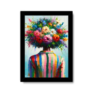 تابلو راویتا طرح دختر و گل کد 3708 فریم مشکی