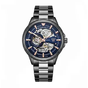 ساعت مچی عقربهای اتوماتیک مردانه بین باند مدل صفحه نیمه اسکلتون بند استیل کد ۲