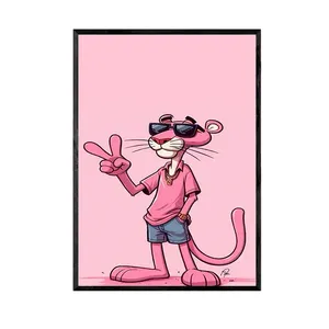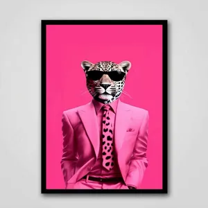 تابلو طرح پلنگ صورتی کد 01 فریم مشکی