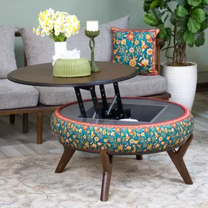 این ست شامل یک میز جلومبلی با صفحهی متحرک و دو میز عسلی است که در هماهنگی کامل با یکدیگر طراحی شدهاند. صفحهی جلومبلی با مکانیزم بالارونده باز میشود و محفظهای جادار در دل خود دارد؛ کاربردی برای نگهداری وسایل پذیرایی یا لوازم روزمره. دو میز عسلی نیز با پایههای اریب چوبی و پارچهی هماهنگ، ترکیب چشمنوازی از هنر و کارایی را ارائه میدهند.