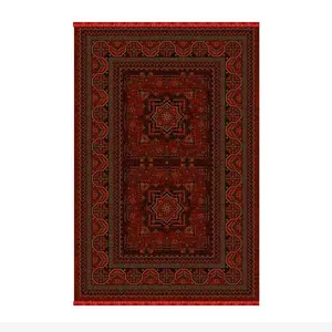 فرش ماشینی 500 شانه ستاره طلایی ملت زمینه قرمز لاکی حاشیه لاکی مدل بلوچ 114