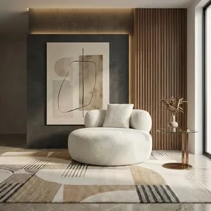 این مبل گرد با طراحی مدرن و الهامگرفته از خطوط نرم و منحنی، انتخابی خاص برای فضاهای مینیمال و لوکس است. این مبل با فرم دایرهای و پشتی بیضیشکل خود، ترکیبی از راحتی و زیبایی را ارائه میدهد. روکش پارچهای تدی آن، لمسی لطیف و رنگی خنثی دارد که بهراحتی با انواع دکورها هماهنگ میشود. پایههای کوتاه خودرنگ و بدنهی مستحکم باعث پایداری بالا و نشیمن راحت میشود