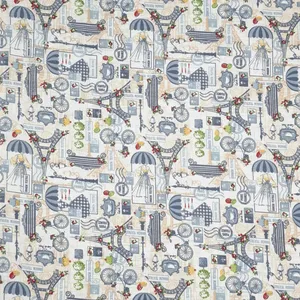 پارچه ملحفه عرض 1.5 متر پارچه باما طرح سه بعدی قلم کلبه کد 5014799 رنگ آبی