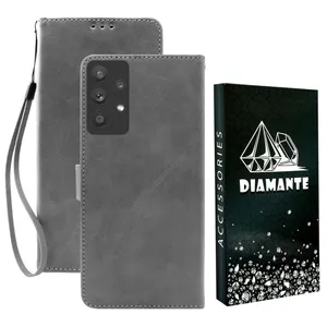 کیف کلاسوری دیامانته مدل Gray Bk مناسب برای گوشی موبایل سامسونگ Galaxy A12 به همراه بندآویز