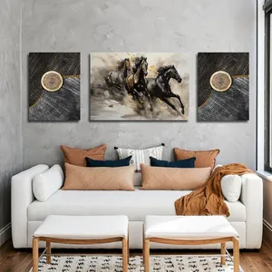 تابلو بوم طرح مخمل سه اسب مدل خطاطی کد BK24707