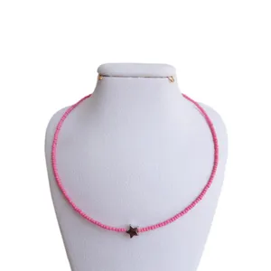 طول گردنبند ۳۸ سانت است به علاوه ۵ سانت زنجیر سایز برای تنظیم قد گردنبند در گردن . جنس بند منجوق رنگی پاستلی با رنگ ثابت میباشد .