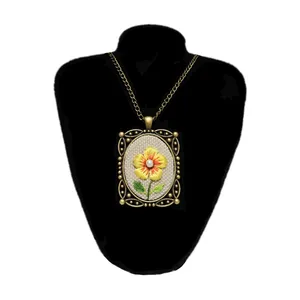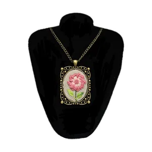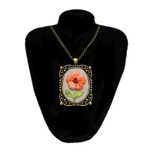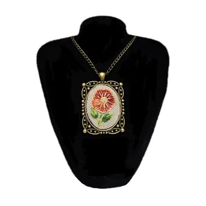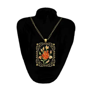 گردنبند گلدوزی با قاب و زنجیر برنزی یک هدیه زیبا برای خاص پسندها و علاقه مندان به هنر است.این قاب با نخ های کتان با کیفیت و رنگ ثابت دوخته شده و هیچ گونه پرز دهی ندارد