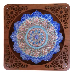 بشقاب میناکاری به قطر 19.5 سانت در قاب چوبی