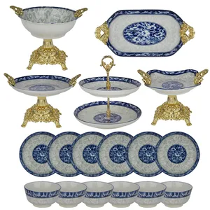 این مجموعه شامل استند میوه، کیک، شکلات، آجیل، استند شات، مزهسهکاسهای، پیشدستیها، فنجانها، سینیهای سرو و سایر اقلام مکمل است. تمام قطعات هماهنگ طراحی شدهاند تا نیاز میز پذیرایی را بدون خرید اقلام اضافی کامل کنند. قطعات فلزی قابل شستشو بوده و بهترین روش تمیزکاری، استفاده از دستمال نرم و مقدار کمی مایع است.