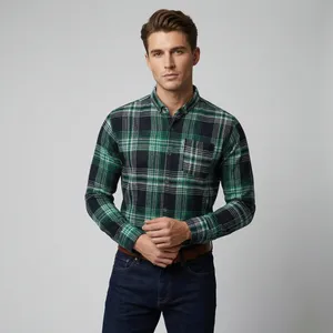 پیراهن آستین بلند یقه برگردان مردانه مدل چهارخانه کش جیبدار کلاسیک 1