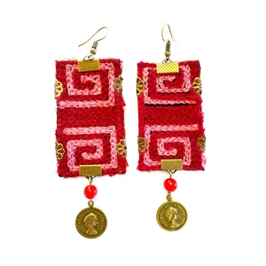 گوشوارهای دستساز، گلدوزی شده بر روی نمد با متریال باکیفیت. اتصالات استیل با رنگ ثابت و ضدحساسیت طراحی شدهاند. این گوشواره مناسب استفاده در مراسم رسمی و روزمره است و با منجوق و ملیله تزیین شده است.