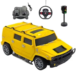 ماشین بازی کنترلی ناب سل مدل هامر شارژی پدال دار فرمانی چراغ دار همراه با چراغ راهنمایی Rechargeable hammer yl with pedals, illuminated steering wheel and traffic lights