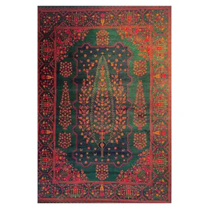 فرش ماشینی 700 شانه زمینه سبز حاشیه سبز مدل بلوچ bcf تراکم 2100 کد 716
