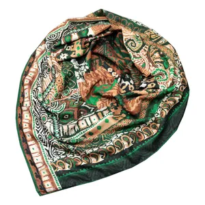روسری زنانه آبی با لبههای فیروزه ای و الگوی هندسی شکل هست و مناسب استفاده روزمره است.