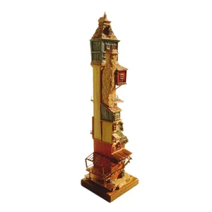 این مجسمه دکوری چوبی، یک اثر کاملاً دستساز با الهام از خانههای فانتزی و قصهمحور است که با دقت و حوصله در کارگاه چوبی ساخته شده است. فرم نامتقارن، پنجرههای ظریف، بافت چوب و جزئیات تزئینی مانند پیچکها و قابها، به این اثر هویتی گرم و زنده میدهد که آن را از محصولات صنعتی و تکراری متمایز میکند.