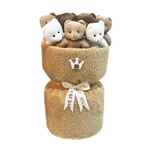 این دستگل عروسکی با بوکت خرس در آغوش شامل ده خرس رنگی میشود که دو تم رنگی صورتی کرم و قهوه ای کرم دارد.