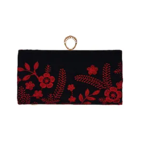 کیف مجلسی بالا از منجوق دوزی برجسته فاخر با رنگ زرشکی پر رنگ به طرح گل رز ترند این روزها،بر روی پارچه جیر مشکی اعلا آماده سازی شده که یراق طلایی براق و محکمی با دسته های نگین کاری شده و دوحالته دارد.حالت اول دسته دار و حالت دوم انگشتری و دسته خوابیده روی مچ استفاده میشود.