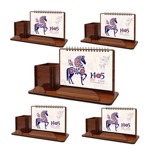 دارای جامدادی و جا کارتی در سمت چپ تقویم، ابعاد 23/5×13سانتیمتر، کمجا و مناسب هر میز کار یا خانه است.